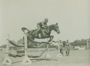 186. MŁJ-XVI 1519/00/037 skoki przez przeszkody, trening , mjr Józef Trenkwald (1897-1956), wybitny jeździec, instruktor jazdy ...