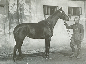 51. MŁJ-XVI 1744/00/030 konie, portret , Ppłk Karol Rómmel (1888-1967), wybitny jeździec i trener. Startował na IO w 1912 – skoki, ...