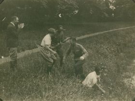 61. MŁJ-XVI 1628/00/047 życie codzienne , p. Skomorowski, Maria Kraińska (1916-2002), Jadwiga Grothhus (1920-2011) - córka Gustawa i ...