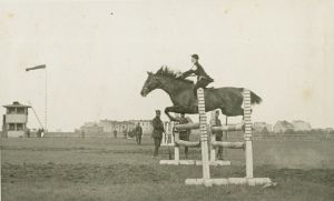 56. MŁJ-XVI 1641/00/017 skoki przez przeszkody, zawody konne, konkursy hipiczne , Romana (Roma) Brökere(1909-2001, ze Strumian, ...
