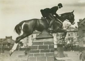 60. MŁJ-XVI 1641/00/026 skoki przez przeszkody, trening(?), zawody konne(?), konkursy hipiczne(?) , Gertruda Rowecka z domu ...