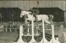 19. MŁJ-XVI 1641/00/026 skoki przez przeszkody, trening(?), zawody konne(?), konkursy hipiczne(?) , Gertruda Rowecka z domu ...