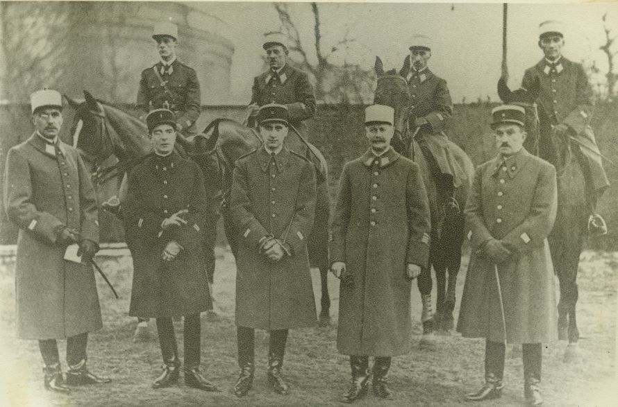 | Nr. inwentarzowy: MŁJ-XVI 1639 / 00 / 030 opis: Ekipa Francji (skoki) - na koniach od l.: por. hr. M. de Bartillat, kpt. M. Gudin de Vallerin, kpt. F. Durand, kpt. H. de Maupéou; stoją od l.: kpt. X. Bizard, por. P. de Cavaillé, por. Ch. de Casteries, szef ekipy de Lassardiere [Laissardiere], kpt. P. Clavé. Z tyłu mur, za nim budynki i drzewa.czas powstania - daty graniczne: 1929-01-01 - 1939-08-31osoby: Francuzi: por. hr. M. de Bartillat, kpt. Maurice Gudin de Vallerin, kpt. François Durand, kpt. Hubert de Maupéou, kpt. Xavier Bizard, por. P. de Cavaillé, por. Christian de Casteries, de Lassardiere [Laissardiere], kpt. Pierre Clavétworzywo: papier fotograficzny, matowytechnika: odbitka żelatynowo-srebrowa z innej odbitkizespół: album Clemensa Nagla Międzynarodowi artyści w jeździe przez przeszkodywymiary (wys. x szer.): 113 x 170 [mm]