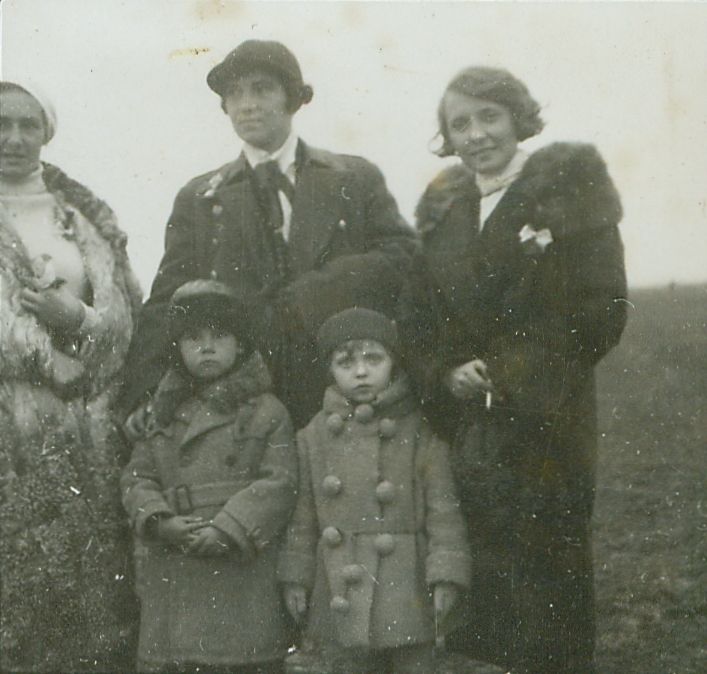 | Nr. inwentarzowy: MŁJ-XVI 1745 / 00 / 048 opis: Po biegu myśliwskim - trzy kobiety i dwójka ciepło ubranych dzieci. Od lewej: Anna Leska (w futrze, nieco poza kadrem), p. Fularowa, młoda kobieta z gołą głową, paląca papierosa.czas powstania - daty graniczne: 1931-11-03 - 1931-11-03miejsce: Stanisławówosoby: Anna (Anka) Leska, później Leska-Daab (1910-1998), p. Fularowa (Fulara).inne nazwy własne: bieg św. Hubertatworzywo: papier fotograficzny, błyszczącytechnika: odbitka żelatynowo-srebrowa DOP, czarno-białazespół: album rodziny Leskichwymiary (wys. x szer.): 38 x 45 [mm]