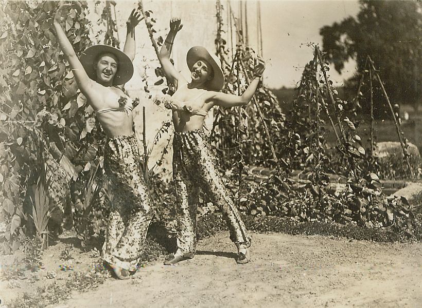 | Nr. inwentarzowy: MŁJ-XVI 1745 / 00 / 022 opis: W ogrodzie, wśród tyczek z fasolą Anna i Wanda Leskie w egzotycznych strojach. Kobiety pozują do zdjęcia w kapeluszach z szerokimi rondami, kolorowych spodniach i ozdobionych kwiatami stanikach.data: sierpieńczas powstania - daty graniczne: 1931-08-01 - 1931-08-31miejsce: Parzniewice (łódzkie, majątek Kotlińskich, od 1931 r. Wereszczyńskich)osoby: Wanda Leska, później Bohdanowicz (1908-1991), Anna (Anka) Leska, później Leska-Daab (1910-1998).tworzywo: papier fotograficzny, błyszczącytechnika: odbitka żelatynowo-srebrowa DOP, czarno-białazespół: album rodziny Leskichwymiary (wys. x szer.): 81 x 111 [mm]