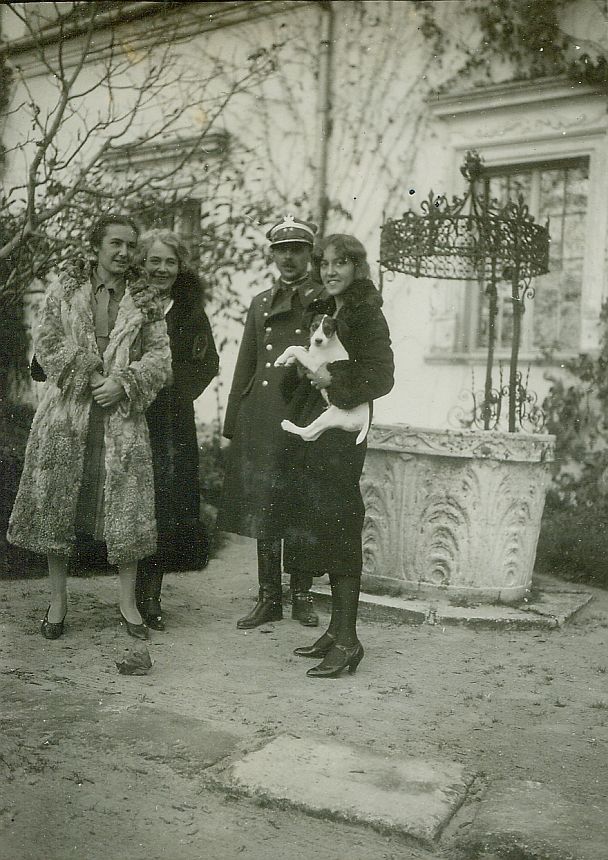 | Nr. inwentarzowy: MŁJ-XVI 1745 / 00 / 038 opis: Anna Leska z wizytą u pp. Komorowskich w Świrzu. Przed zamkiem stoją 4 osoby: Anna Leska (w futrze), kobieta NN (w ciemnym płaszczu), Tadeusz Komorowski (w mundurze) i jego żona Irena Komorowska (w ciemnym płaszczu z pieskiem na ręku).czas powstania - daty graniczne: 1931-10-01 - 1931-10-31miejsce: Świrz, majątek pp. Komorowskichosoby: Anna (Anka) Leska, później Leska-Daab (1910-1998), ppłk Tadeusz Komorowski (1895-1966, późniejszy gen. dyw. „Bór”, dowódca AK i powstania warszawskiego, Naczelny Wódz Polskich Sił Zbrojnych na Zachodzie), Irena z Lamezanów Komorowska (1904–1968, dziedziczka Świrza).tworzywo: papier fotograficzny, błyszczącytechnika: odbitka żelatynowo-srebrowa DOP, czarno-białazespół: album rodziny Leskichwymiary (wys. x szer.): 111 x 78 [mm]