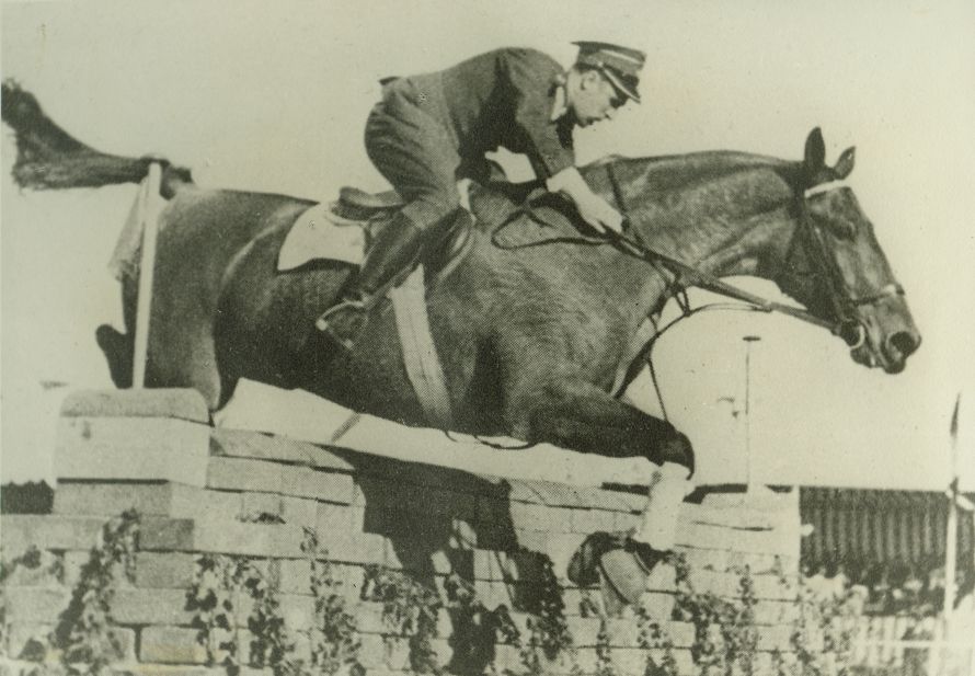 | Nr. inwentarzowy: MŁJ-XVI 1639 / 00 / 015 opis: Rtm. Janusz Komorowski skacze przez "ceglany" mur na koniu Zbieg II. Koń w rzędzie sportowym, ogłowie wędzidłowe, wytok. W tle trybuny z publicznością pod charakterystycznymi namiotami w pasy.data: podano daty pierwszego dnia konkursów w Nicei w 1938 i pierwszego dnia następujących po zawodach w Nicei w 1939 r. konkursów w Rzymieczas powstania - daty graniczne: 1938-04-16 - 1939-04-30miejsce: Niceaosoby: rtm. (od 1938 r.) Janusz Komorowski 1 p.u. - wybitny jeździec - skoczek, olimpijczyktworzywo: papier fotograficzny, matowytechnika: odbitka żelatynowo-srebrowa z wydrukuzespół: album Clemensa Nagla Międzynarodowi artyści w jeździe przez przeszkodywymiary (wys. x szer.): 127 x 174 [mm] Koń: 1. Zbieg II, wałach, rasa: 1/2 krwi deresz i am. kłusaczka, maść gniado-dereszowata, ur. 1927 - Derwisz-Brunetka, hod. Stępczyński, wł. CWK. Mocny, szybki, ogromna potęga. W 1936 wygrał PN w Rydze. Startował pod Sokołowskim na IO w Berlinie w skokach. Do wojny startował pod J. Komorowskim, m.in. 1. m. w PN na CHIO w Warszawie 1938 r.