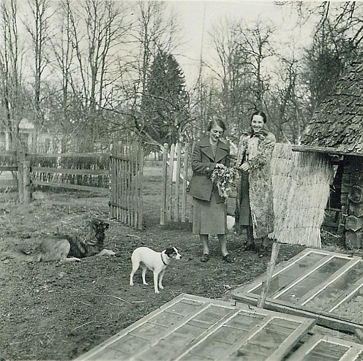 | Nr. inwentarzowy: MŁJ-XVI 1747 / 00 / 039 opis: Wielkanoc. Inspekty w ogrodzie warzywnym Krystyny Bohdanowicz. Z zebranymi rzodkiewkami stoją od lewej: Helena Bohdanowicz, Wanda Bohdanowicz. Obok psy - leży Lord, stoi Kimi. W głębi dwór.czas powstania - daty graniczne: 1938-04-17 - 1938-04-17miejsce: Stajki - majątek Bohdanowiczów, obecnie wieś na Białorusi w rejonie wilejskim, obwodu mińskiegoosoby: Wanda Bohdanowicz zd. Leska - żona rtm. Michała Bohdanowicza; Helena Bohdanowicz ur. 1899 r. - siostra Michała i Krystyny Bohdanowiczów.tworzywo: papier fotograficzny, błyszczącytechnika: odbitka żelatynowo-srebrowa DOP, czarno-białazespół: album rodziny Leskichwymiary (wys. x szer.): 60 x 60 [mm]
