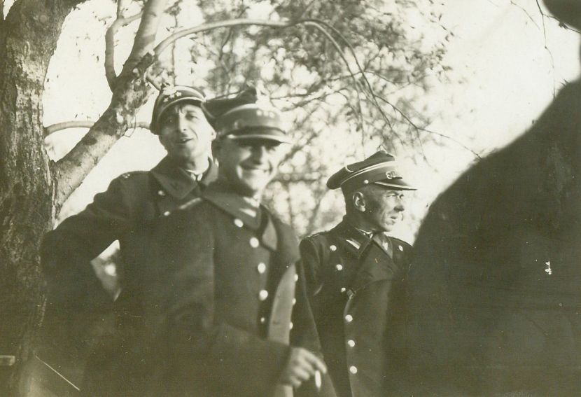 | Nr. inwentarzowy: MŁJ-XVI 1753 / 00 / 088 opis: Konkursy hipiczne 9 p.s.k. Trzech wojskowych. Pierwszy z lewej (w głębi) płk Tadeusz Grabowski. Drugi z lewej rtm. Marian Korczak.data: październik 1929 r.czas powstania - daty graniczne: 1929-10-01 - 1929-10-31miejsce: Grajewoosoby: Płk Tadeusz Garbowski 1886-1940 Katyń (wykształcony, inżynier, miłośnik sportu' w l. 1928-31 dowódca 9 p.s.k. w Grajewie, potem praca w M.S.Wojsk.); rtm. Marian Korczak 1897-1940 Katyń (wówczas adiutant w 10 p.u. w Białymstoku)inne nazwy własne: 9 Pułk Strzelców Konnych imienia generała Kazimierza Pułaskiego; 10 Pułk Ułanów Litewskichtworzywo: papier fotograficzny, błyszczącytechnika: odbitka żelatynowo-srebrowa DOP, czarno-białazespół: album rodziny Bohdanowiczówwymiary (wys. x szer.): 84 x 116 [mm]