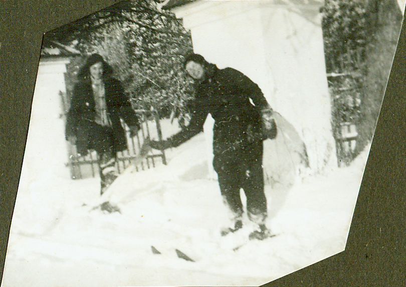| Nr. inwentarzowy: MŁJ-XVI 1757 / 00 / 002 opis: Wanda Bohdanowicz (z lewej) i Krystyna Bohdanowiczówna na nartach - pozują do zdjęcia na tle słupów bramy.data: styczeń 1934 r.czas powstania - daty graniczne: 1934-01-01 - 1934-01-31miejsce: Stajki - majątek Bohdanowiczów, obecnie wieś na Białorusi w rejonie wilejskim, obwodu mińskiegoosoby: Wanda Bohdanowicz 1908-1991 (do 1932 Leska, córka Juliusza Leskiego i Marii z d. Olszyńskiej, żona Michała Bohdanowicza); Krystyna Bohdanowiczówna ("Krysia" - córka Jana Bohdanowicza i Marii z Cywińskich, siostra Michała i Heleny Bohdanowiczów).tworzywo: papier fotograficzny, błyszczącytechnika: odbitka żelatynowo-srebrowa DOP, czarno-białazespół: album rodziny Bohdanowiczówwymiary (wys. x szer.): 48 x 68 [mm]