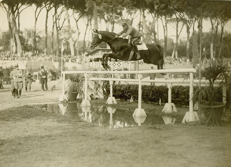 | Nr. inwentarzowy: MŁJ-XVI 1751 / 00 / 009 opis: Międzynarodowe Konkursy Hipiczne, włoski zawodnik kpt. Alessandro Bettoni w skoku przez triple-barre na rowie z wodą.data: maj 1931czas powstania - daty graniczne: 1931-05-01 - 1939-05-30miejsce: Rzymosoby: Włoch kpt./mjr Alessandro Bettoni Cazzago (1892-1951), olimpijczyk z Amsterdamu 1928 i Londynu 1948.tworzywo: papier fotograficzny, matowytechnika: odbitka żelatynowo-srebrowa DOP, czarno-białaautor: Do Bois Fernandozaklad: PHOTO-REPORTAGE, ROMAzespół: album rodziny Bohdanowiczówwymiary (wys. x szer.): 175 x 235 [mm]