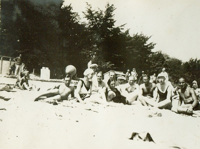 | Nr. inwentarzowy: MŁJ-XVI 1753 / 00 / 027 opis: Dziesięcioro przyjaciół w strojach kąpielowych na piaszczystej plaży. Wśród nich Wilhelm Lewicki (pierwszy z lewej), Wanda Leska (z przodu, w środku, w ciemnym kostiumie). W tle inni ludzie, drzewa.data: lipiec - sierpień 1929 .czas powstania - daty graniczne: 1929-07-01 - 1929-08-31miejsce: Gdyniaosoby: Rtm. Wilhelm Rogala-Lewicki 1898-1992 Londyn ("Wil", jeździec klasy międzynarodowej); Wanda Leska 1908-1991 (później Bohdanowicz)tworzywo: papier fotograficzny, błyszczącytechnika: odbitka żelatynowo-srebrowa DOP, czarno-białazespół: album rodziny Bohdanowiczówwymiary (wys. x szer.): 87 x 110 [mm]