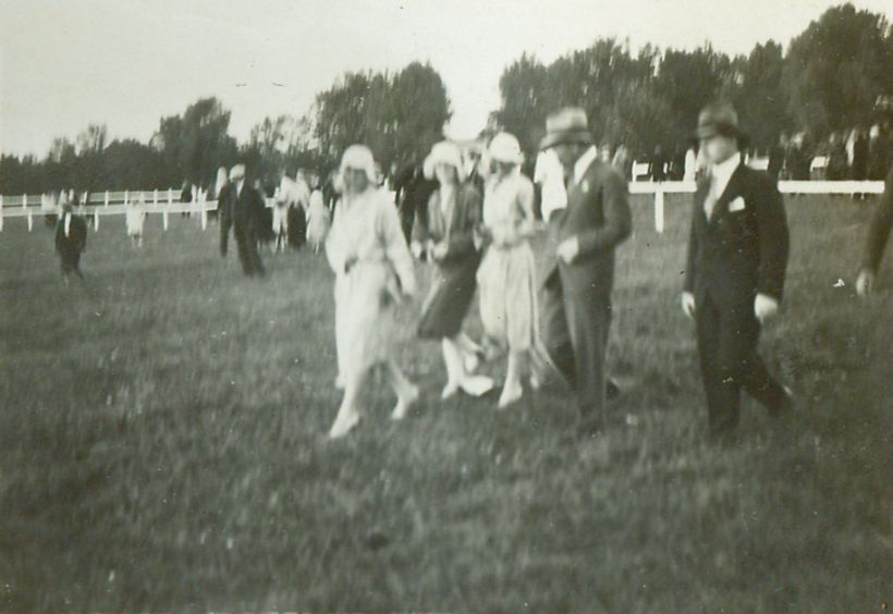 Nr. inwentarzowy: MŁJ-XVI 1753 / 00 / 034 opis: Tor wyścigów konnych, fotografia poruszona, bardzo nieostra. Po trawiastym podłożu idą kibice wyścigowi - kobiety i mężczyźni w cywilnych strojach. W głębi inni ludzie.data: okres mitingu wyścigowego w Piotrkowieczas powstania - daty graniczne: 1929-08-03 - 1929-08-18miejsce: Piotrkówtworzywo:papier fotograficzny, błyszczącytechnika:odbitka żelatynowo-srebrowa DOP, czarno-białazespół:album rodziny Bohdanowiczówwymiary (wys. x szer.): 61 x 89 [mm]