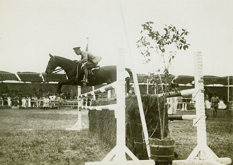 | Nr. inwentarzowy: MŁJ-XVI 1751 / 00 / 006 opis: Międzynarodowe Wojskowe Konkursy Hipiczne, zawodnik belgijski kpt. George van Derton w skoku przez okser.czas powstania - daty graniczne: 1931-04-14 - 1931-04-27miejsce: Niceaosoby: Belg kpt. George M. van Derton 1898-1955; startował na IO w Amsterdamie 1928 na Remember Erin – nie ukończył.tworzywo: papier fotograficzny, półbłyszczącytechnika: odbitka żelatynowo-srebrowa DOP, czarno-białazaklad: PHOTO BERREAU, CANNESzespół: album rodziny Bohdanowiczówwymiary (wys. x szer.): 125 x 172 [mm]