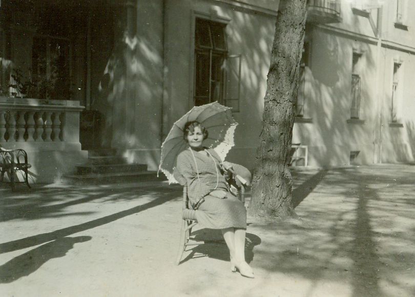 | Nr. inwentarzowy: MŁJ-XVI 1753 / 00 / 077 opis: Przed okazałą willą pozuje do zdjęcia Bronisława Natanson. Siedzi z parasolką na ogrodowym fotelu.data: wrzesień 1929 r.czas powstania - daty graniczne: 1929-09-01 - 1929-09-30miejsce: Konstancinosoby: Babka Wandy, Anny i Kazimierza Leskich, matka Jana, Zofii, Józefy, Bronisławy i Juliusza Natansona-Leskiego - Bronisława Natanson 1850-1944 (zd. Kempner, żona Kazimierza Natansona)tworzywo: papier fotograficzny, błyszczącytechnika: odbitka żelatynowo-srebrowa DOP, czarno-białazespół: album rodziny Bohdanowiczówwymiary (wys. x szer.): 88 x 118 [mm]