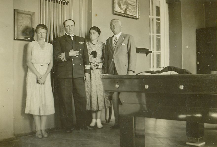 | Nr. inwentarzowy: MŁJ-XVI 1640 / 00 / 044 opis: Rajd Poznań-Gdynia, zorg. przez Śląski Klub Jazdy Konnej. Uczestnicy rajdu w sali kasyna oficerskiego. Pod ścianą ozdobioną obrazami stoją: R. Brökere (jasna sukienka), oficer w mundurze, K. Dobrogoyska (kolorowa sukienka), St. Grabianowski. Na pierwszym planie stół bilardowy.data: podano początkową i końcową datę rajduczas powstania - daty graniczne: 1933-08-03 - 1933-08-28miejsce: Gdynia, Oksywie [Oksywja], kasyno oficerskie Marynarki Wojennejosoby: Romana (Roma) Brökere(1909-2001, później Daszkowska), oficer marynarki, Krystyna Dobrogoyska (1902-1975), inż. Stanisław Grabianowski (1889-1957, szef wyprawy)tworzywo: papier fotograficzny, błyszczącytechnika: odbitka żelatynowo-srebrowa DOP, czarno-białazespół: album rodziny Brökerewymiary (wys. x szer.): 64 x 90 [mm]