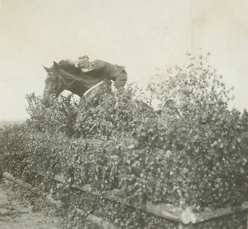 | Nr. inwentarzowy: MŁJ-XVI 1743 / 00 / 020 opis: Międzynarodowe zawody konne. Jeździec w mundurze skacze na koniu przez przeszkodę (hyrda "do czesania"). Widok z przodu, z ukosa.czas powstania - daty graniczne: 1930-05-30 - 1930-05-30miejsce: Warszawa, Moczydło (tu odbyła się próba wytrzymałości)tworzywo: papier fotograficzny, błyszczącytechnika: odbitka żelatynowo-srebrowa DOP, czarno-białazespół: album rodziny Leskichwymiary (wys. x szer.): 58 x 63 [mm]