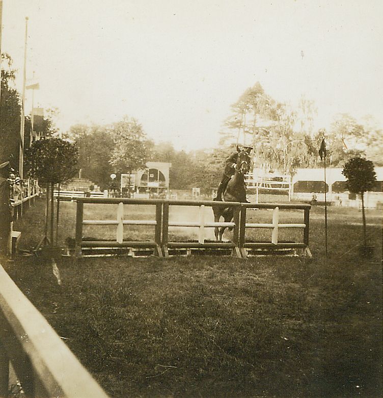 | Nr. inwentarzowy: MŁJ-XVI 1744 / 00 / 089 opis: Do skoku przez stacjonatę odbija się koń ciemnej maści. Jeździec - oficer w mundurze (okrągła czapka). Z boku żołnierz. Ujęcie z przodu. Po lewej skraj odkrytej trybuny z publicznością. Widać inne trybuny i urządzenia, przeszkody, drzewa.data: liście na drzewach - nie jest to zimaczas powstania - daty graniczne: 1931-03-01 - 1931-10-31miejsce: Warszawa, hipodrom w Łazienkachinne nazwy własne: Konkursy w Łazienkach, zawody konne w Łazienkachtworzywo: papier fotograficzny, błyszczącytechnika: odbitka żelatynowo-srebrowa DOP, czarno-białazespół: album rodziny Leskichwymiary (wys. x szer.): 61 x 57 [mm]