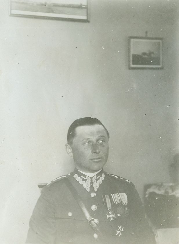 | Nr. inwentarzowy: MŁJ-XVI 1745 / 00 / 064 opis: Oficer 14 Pułku Ułanów Jerzy Strużyński. Wśród przyjaciół nazywany „wodzem bandy Kłaka”. Rotmistrz w mundurze wyjściowym, z medalami i odznaczeniami (m.in. VM za wojnę 1918-20) siedzi w pokoju. Na ścianie obrazki z końmi.data: zima 1932 r.czas powstania - daty graniczne: 1932-01-01 - 1932-03-31osoby: Rtm. Jerzy Strużyński 14 p.u. tworzywo: papier fotograficzny, błyszczącytechnika: odbitka żelatynowo-srebrowa DOP, czarno-białazespół: album rodziny Leskichwymiary (wys. x szer.): 118 x 89 [mm]