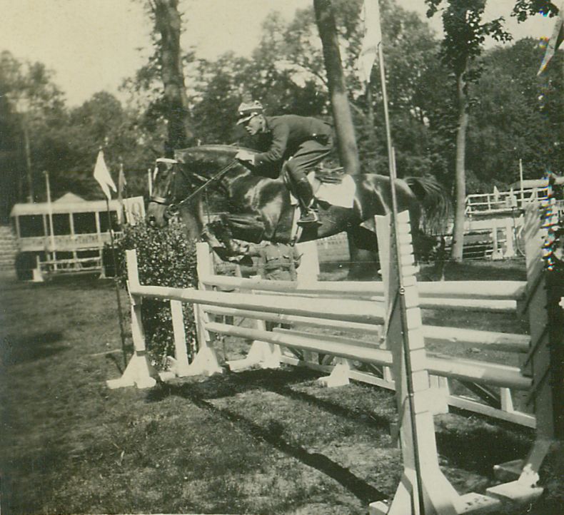 | Nr. inwentarzowy: MŁJ-XVI 1743 / 00 / 031 opis: Międzynarodowe zawody konne. Por. Władysław Zgorzelski w skoku na ciemnej maści koniu Rinaldo przez przeszkodę (jasny okser). Koń w sportowym rzędzie (ogłowie wędzidłowe). W tle trybuna, drzewa.czas powstania - daty graniczne: 1930-06-01 - 1930-06-11miejsce: Warszawa, Łazienki, hipodromosoby: por. Władysław Zgorzelski (1901-1998) 15 p.u.tworzywo: papier fotograficzny, błyszczącytechnika: odbitka żelatynowo-srebrowa DOP, czarno-białazespół: album rodziny Leskichwymiary (wys. x szer.): 52 x 58 [mm] Koń: 1. Rinaldo - W 1929 r. pod. Wł. Zgorzelskim mistrzostwo Armii ind. i zespołowo, w 1930 r. zespołowo