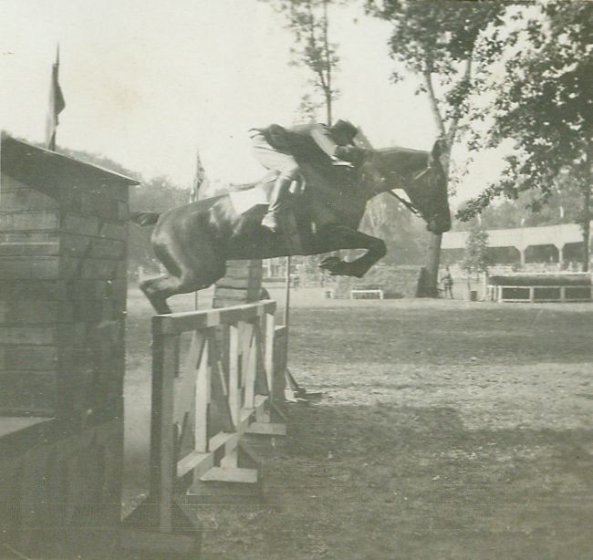 | Nr. inwentarzowy: MŁJ-XVI 1743 / 00 / 013 opis: Międzynarodowe zawody konne. Oficer z Francji (na głowie kepi) skacze na koniu przez przeszkodę (stacjonata lub bramka z masywnymi wieżami po bokach). W głębi drzewa, trybuny.czas powstania - daty graniczne: 1930-06-01 - 1930-06-11miejsce: Warszawa, Łazienki, hipodromosoby: jeździec z ekipy Francjitworzywo: papier fotograficzny, błyszczącytechnika: odbitka żelatynowo-srebrowa DOP, czarno-białazespół: album rodziny Leskichwymiary (wys. x szer.): 59 x 62 [mm]