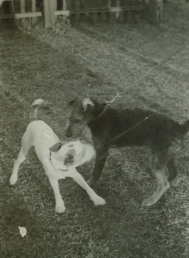 Nr. inwentarzowy: MŁJ-XVI 1746 / 00 / 069 opis: Tor wyścigów konnych."Maskotkii" stajni Michała Bohdanowicza - psy Kimi (jack russell terrier?) i Dandy (foksterier?).czas powstania - daty graniczne: 1936-07-05 - 1936-07-12miejsce: Wilno, Pośpieszka.tworzywo:papier fotograficzny, błyszczącytechnika:odbitka żelatynowo-srebrowa DOP, czarno-białazespół:album rodziny Leskichwymiary (wys. x szer.): 114 x 83 [mm]