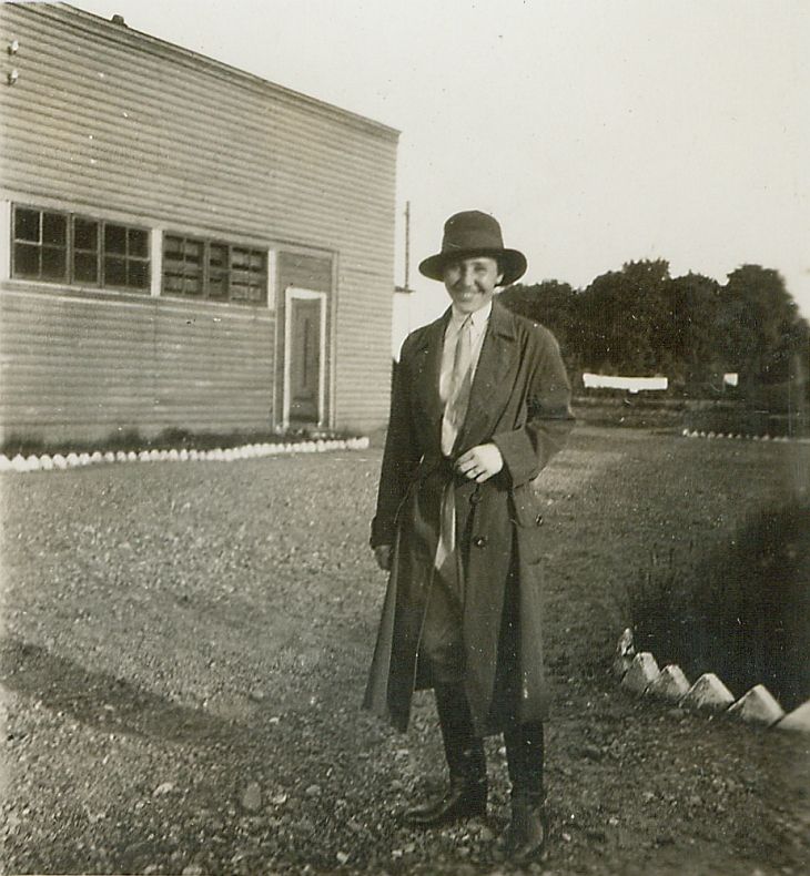 | Nr. inwentarzowy: MŁJ-XVI 1744 / 00 / 063 opis: Wanda Leska w płaszczu zarzuconym na strój jeździecki. Na głowie kapelusz, jasna bluzka z krawatem, bryczesy, długie buty. Stoi na placu przed dużym budynkiem o elewacji z poziomych desek, z szeregiem przylegających do siebie okien. Z tyłu klomby, drzewa.czas powstania - daty graniczne: 1931-05-01 - 1931-05-31miejsce: Warszawaosoby: Wanda Leska (1908-1991)tworzywo: papier fotograficzny, błyszczącytechnika: odbitka żelatynowo-srebrowa DOP, czarno-białazespół: album rodziny Leskichwymiary (wys. x szer.): 61 x 57 [mm]