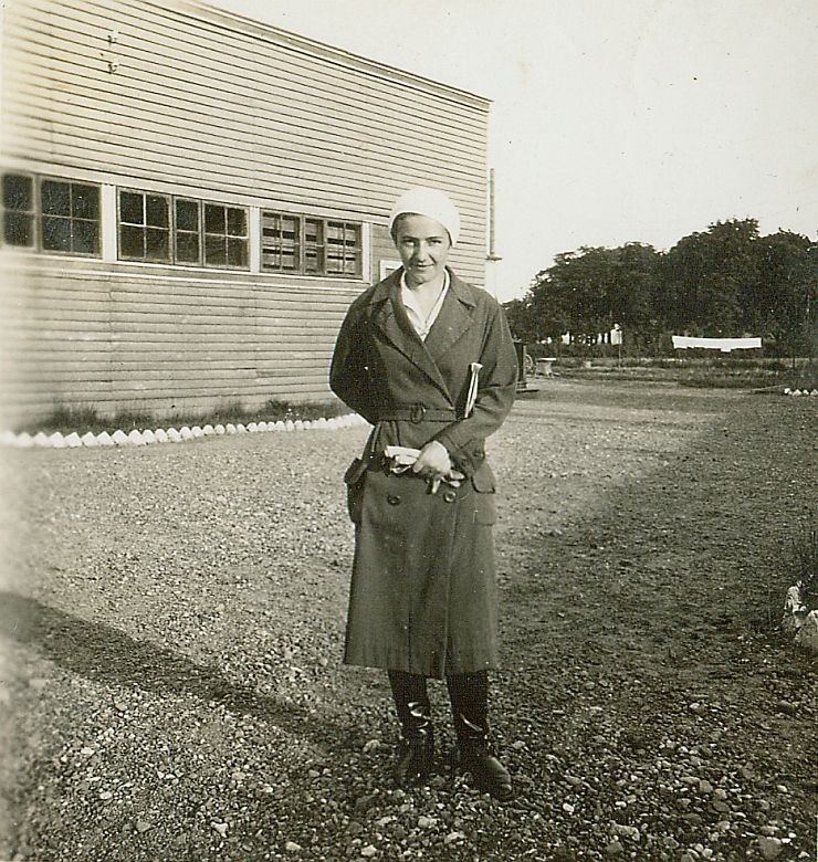 | Nr. inwentarzowy: MŁJ-XVI 1744 / 00 / 062 opis: Anna Leska w płaszczu zarzuconym na strój jeździecki. Na głowie jasny beret, w ręku rękawiczki, pod pachą zeszyt(?), na nogach długie buty. Stoi na placu przed dużym budynkiem o elewacji z poziomych desek, z szeregiem przylegających do siebie okien.czas powstania - daty graniczne: 1931-05-01 - 1931-05-31miejsce: Warszawaosoby: Anna [Anka] Leska (1910-1998)tworzywo: papier fotograficzny, błyszczącytechnika: odbitka żelatynowo-srebrowa DOP, czarno-białazespół: album rodziny Leskichwymiary (wys. x szer.): 60 x 56 [mm]
