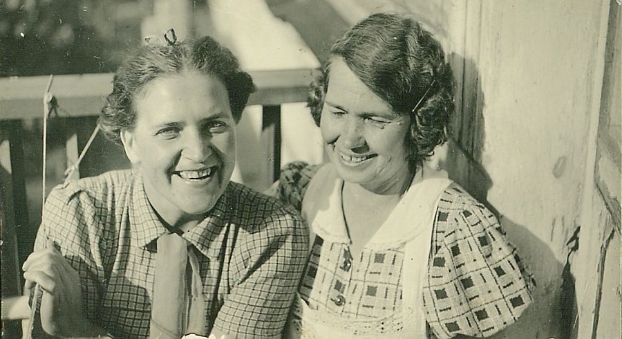 Na balkonie lub tarasie dwie kobiety: Naścia i Mania.