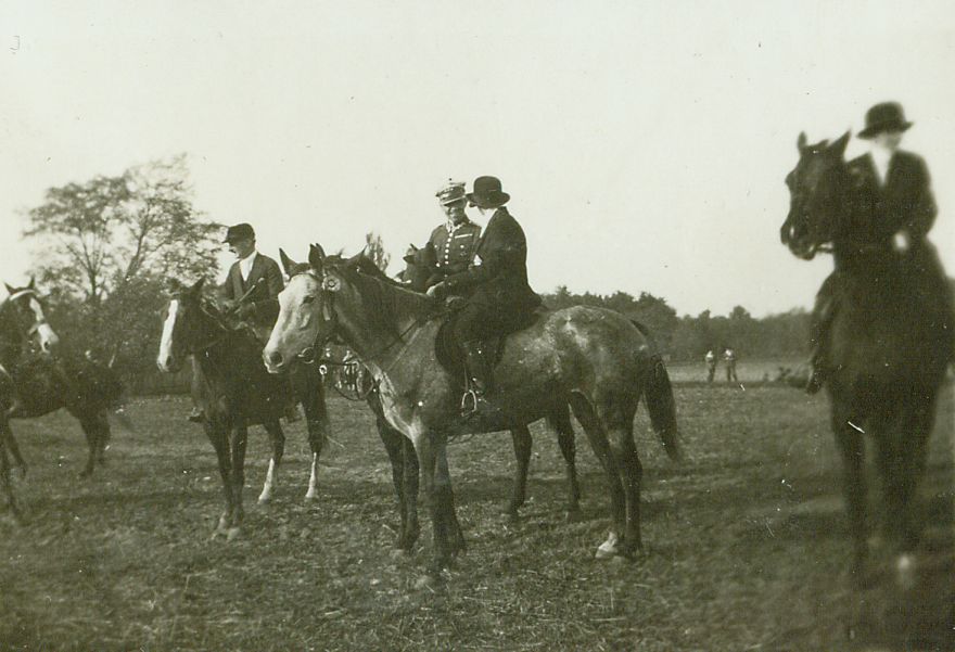 | Nr. inwentarzowy: MŁJ-XVI 1743 / 00 / 076 opis: Łąka lub ściernisko, w tle las. Zbiórka na rozpoczęcie lub zakończenie (formowanie szeregu?). Kilkoro jeźdźców na koniach (widać rtm. W. Lewickiego, cywila, i 2 kobiety). Cywil we fraczku i toczku, W. Lewicki w mundurze, 2 amazonki we frakach i melonikach. Z boku i z tyłu inni ludzie i konie.czas powstania - daty graniczne: 1930-10-01 - 1930-10-31miejsce: Majątek Słaboszewiczów - Ostrowiec koło Wołominaosoby: rtm. Wilhelm [Wil] Rogala-Lewicki (1898-1992)tworzywo: papier fotograficzny, błyszczącytechnika: odbitka żelatynowo-srebrowa DOP, czarno-białazespół: album rodziny Leskichwymiary (wys. x szer.): 49 x 70 [mm]