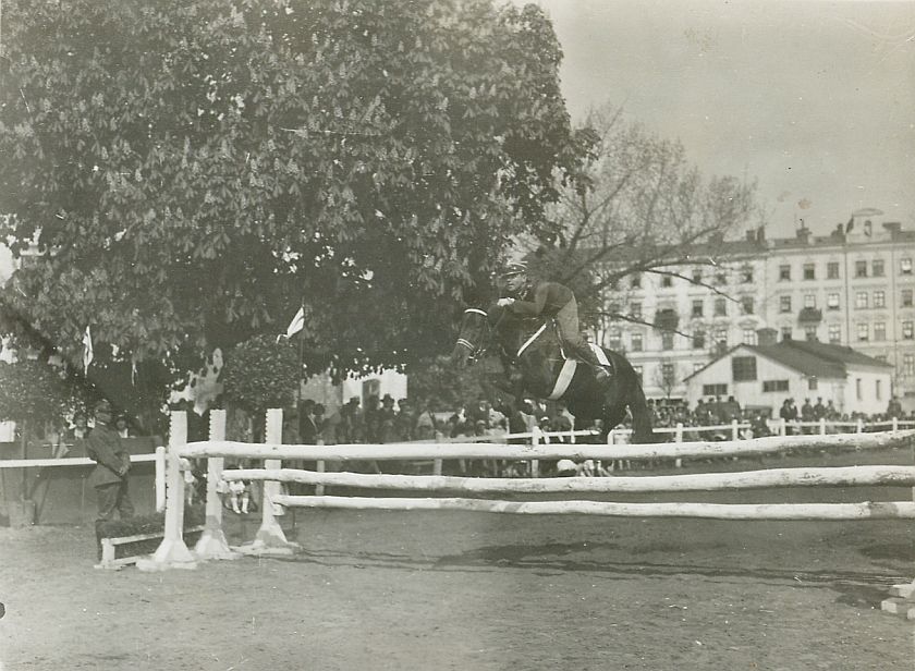 | Nr. inwentarzowy: MŁJ-XVI 1744 / 00 / 053 opis: Konkurs Klubu Sportowego Rodziny Wojskowej. Przez triplebarre skacze rtm. Wilhelm Lewicki na klaczy Kikimora. Szeroka, jasna przeszkoda, z boku żołnierz. Koń ciemnej maści, w rzędzie sportowym. Jeździec w mundurze. W tle drzewo, budynki.czas powstania - daty graniczne: 1931-05-14 - 1931-05-14miejsce: Warszawa, ujeżdżalnia Szwadronu Sztabowegoosoby: Wilhelm [Wil] Rogala-Lewicki (1898-1992)tworzywo: papier fotograficzny, błyszczącytechnika: odbitka żelatynowo-srebrowa DOP, czarno-białazespół: album rodziny Leskichwymiary (wys. x szer.): 91 x 120 [mm] Koń: 1. Kikimora, klacz, maść skarogniada, ur. 1925 - po Parachute xx i NN, hod. Henryk Jechalski, wł. W. Lewicki. 1933 - 1 m. w PN w Łazienkach i 3 m. w MP w skokach. 1934 – 1 m. w MP w skokach; 1935 r. gł. nagr. ind. w Łazienkach; szykowana do berlińskiej olimpiady