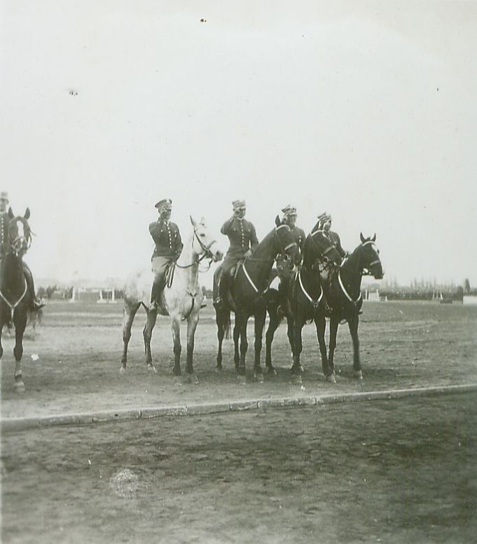 | Nr. inwentarzowy: MŁJ-XVI 1518 / 00 / 076 opis: Zespół Pomorskiego Towarzystwa Zachęty do Hodowli Koni w Grudziądzu; 4 oficerów konno, salutują; I miejsce w konkursie Zespołów Klubowych o nagrodę Miasta i Powiatu Gnieznodata: wg programów 2 i 3 maja to III-IV dzień zawodów, które odbywały się na ogół na przełomie tych miesięcy i trwały kilka dniczas powstania - daty graniczne: 1933-04-24 - 1933-05-07miejsce: Polska, Gnieznoosoby: por. Tadeusz Sokołowski, por. Henryk Gąsecki, por. Jan Mossakowski, por. Kazimierz Nieniewskiinne nazwy własne: Komitet Targów Końskich [organizator konkursów podczas kwietniowego jarmarku na św. Wojciecha]tworzywo: papier fotograficzny, błyszczącytechnika: odbitka żelatynowo-srebrowa DOP, czarno-białazespół: album rodziny Nieniewskichwymiary (wys. x szer.): 62 x 52 [mm] Konie: 1. Sawannah vel Savannah, wałach, maść gniada - hod. ang., wł. PZJ Warszawa; koń klasy międzynarodowej, na zdjęciu: na koniu por. Nieniewski 2. Wróżka, klacz, maść siwa, na zdjęciu: pod por. Sokołowskim 3. Orzech, wałach, maść gniada - hod. K. Raszewski, Tyniec, wł. 1 p.s.k., na zdjęciu: pod por. Mossakowskim 4. Wenecja, klacz, maść kasztanowata - hod. hr. Mycielski, Gałowo, wł. M.S.Wojsk., na zdjęciu: 7 lat, pod por. Gąseckim