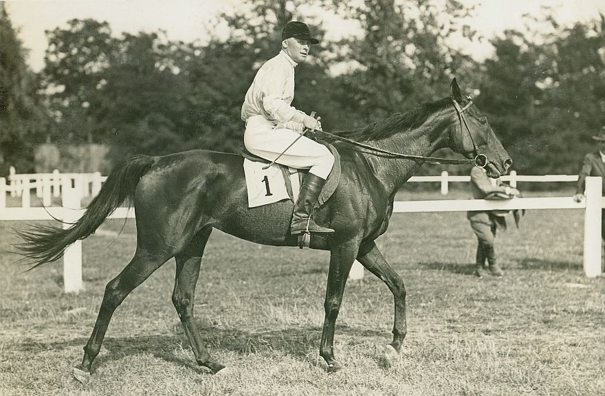 data: sierpieńczas powstania - daty graniczne: 1931-08-01 - 1931-08-31miejsce: Piotrków, tor wyścigów konnych.osoby: Por. Jerzy Strużyński, 14 p.u.tworzywo: papier fotograficzny, półmatowytechnika: odbitka żelatynowo-srebrowa DOP, czarno-białazespół: album rodziny Leskichwymiary (wys. x szer.): 148 x 222 [mm] Koń: 1. Danina, klacz, rasa: xx, maść gniada, ur. 1924 - Hugon — Delightful Morning, hod. Henryka Woźniakowskiego, wł. Z. Rogowski, od 1930 Jerzy Strużyński; brała udział w gonitwach przeszkodowych na przełomie l. 20-30. XX w. na torach w Warszawie, Lwowie, Lublinie, Piotrkowie, Tarnowskich Górach, Przemyślu, Łodzi, najczęściej pod trenerem i właścicielem J. Strużyńskim, wielokrotnie wygrywając.