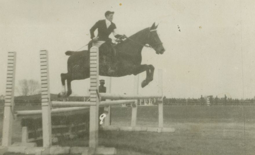 | Nr. inwentarzowy: MŁJ-XVI 1641 / 00 / 016 opis: Zawody organizowane przez Komitet Targów Końskich w Gnieźnie. Brökere w skoku przez triplebarre na koniu Bianka. Amazonka w ciemnym stroju jeździeckim, na ramieniu jasna opaska. Przy przeszkodzie stoi żołnierz. W tle szranki, publiczność, drzewa.data: podano daty pierwszego dnia zawodów w 1930 i ostatniego w 1939 r., prawdopodobnie 28.04.-03.05. 1934 r.czas powstania - daty graniczne: 1930-04-25 - 1939-05-03miejsce: Gniezno, hipodrom Komitetu Targów Końskich w Gnieźnieosoby: Romana (Roma) Brökere(1909-2001, ze Strumian, później Daszkowska)tworzywo: papier fotograficzny, półbłyszczącytechnika: odbitka żelatynowo-srebrowa DOP, czarno-białazespół: album rodziny Brökerewymiary (wys. x szer.): 88 x 139 [mm] Koń: 1. Bianka, klacz, maść kasztanowata, ur. 1924 - nieznanej hodowli, wł. Romy Brökere, startowała w konkursach skoków przez przeszkody