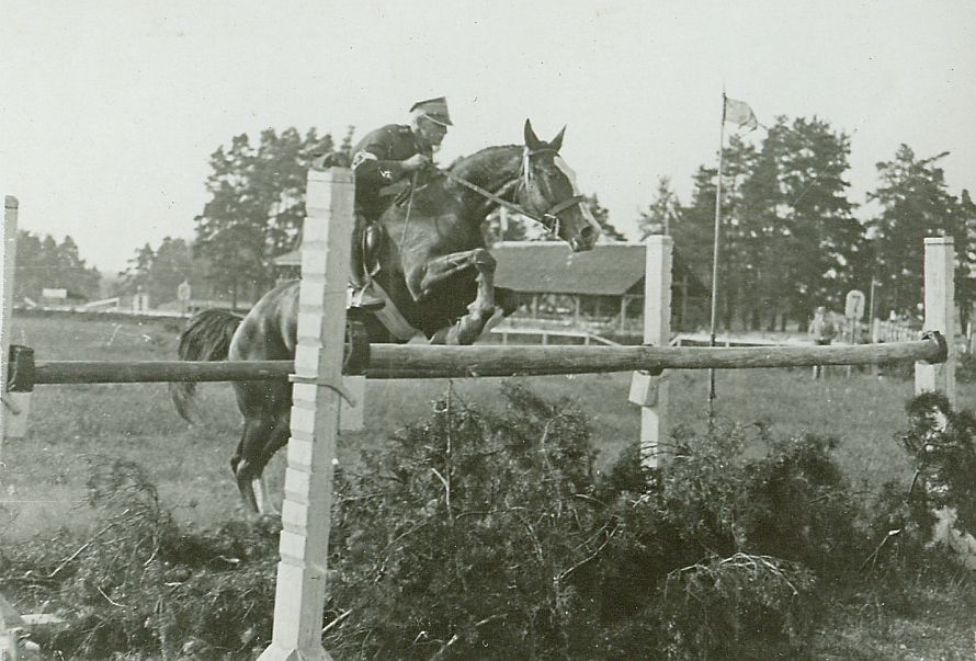 | Nr. inwentarzowy: MŁJ-XVI 1747 / 00 / 094 opis: Tor wyścigów konnych - I Meeting Popularny PZJ. Konkurs nr 16 - ciężki (130 cm), zwykły im. Pana Wojewody Wileńskiego Ludwika Bociańskiego. Rtm. Michał Bohdanowicz na wał. Talar III w skoku przez okser. Para zajęła VII miejsce na 22 startujących.czas powstania - daty graniczne: 1938-07-04 - 1938-07-04miejsce: Wilno, Pośpieszkaosoby: Rtm. Michał Bohdanowicz "Miś" (1903-1948), 13 p.u.; niewidoczny: Ludwik Bociański (1892-1970), płk dypl. WP, wojewoda wileński w l. 1935-1939, a od maja 1939 woj. poznański.inne nazwy własne: PZJ, P.Z.J., Polski Związek Jeździeckitworzywo: papier fotograficzny, błyszczącytechnika: odbitka żelatynowo-srebrowa DOP, czarno-białazespół: album rodziny Leskichwymiary (wys. x szer.): 60 x 82 [mm] Koń: 1. Talar III, wałach, maść kasztanowata - hod. Bogumiła Hebanowskiego; ur. przed 1928, prywatny koń Michała Bohdanowicza, który startował na nim w konkursach ujeżdżenia, skoków (np. Mitingi Popularne PZJ 1938-39 i WKKW ("Militari"), biegach myśliwskich, skiringu, uczestniczył w ćwiczeniach wojskowych. Dosiadała go też żona Michała - Wanda (m.in. w 1937 r. w Grudziądzu).., na zdjęciu: VII miejsce