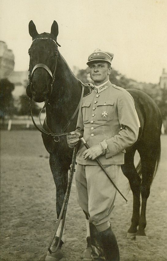 | Nr. inwentarzowy: MŁJ-XVI 1754 / 03 / 012 opis: Portret zdobywców II nagrody w konkursie Armii Polskiej im. Marszałka Polski Józefa Piłsudskiego podczas Krajowych Zawodów Konnych. Por. Roman Pohorecki i osiodłana klacz Farsa. Duży piaszczysty plac, z lewej fragment b. cerkwii pw. św. Olgi(?), wiec to prawdopodobnie ujeżdżalnia 1 Dywizjonu Artylerii Konnej. data: 18.05.lub później, po konkursie Armii Polskiej im. Marszałka Polski Józefa Piłsudskiegoczas powstania - daty graniczne: 1932-05-18 - 1932-05-31miejsce: Warszawa, prawdopodobnie ujeżdżalnia 1 DAKosoby: Por. Roman Pohorecki ur. 1903 r. (14 p.u., wybitny zawodnik okresu przed II wojną światową, instruktor).tworzywo: papier fotograficzny, półmatowytechnika: odbitka żelatynowo-srebrowa DOP, czarno-białazespół: album rodziny Bohdanowiczówwymiary (wys. x szer.): 171 x 111 [mm] Koń: 1. Farsa, klacz, maść kara - po Jarnicoton i Baśka, hod. J. Gorayski; koń, na którym startował Roman Pohorecki (m.in. w l. 30. XX w. sukcesy na hipodromie w Warszawie)