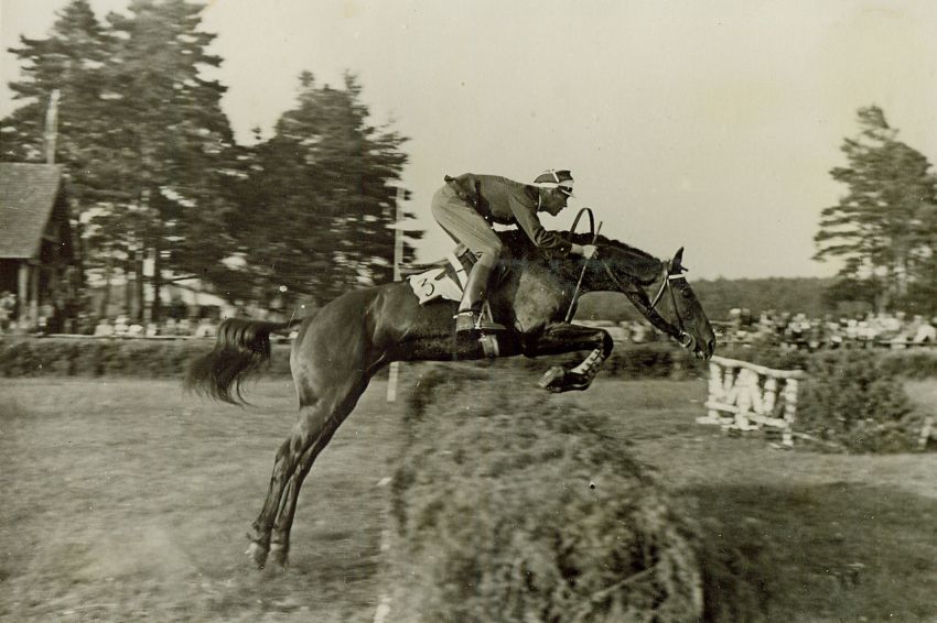 | Nr. inwentarzowy: MŁJ-XVI 1758 / 00 / 104 opis: Tor wyścigów konnych, Wojskowy bieg na przełaj im. 1 Pułku Szwoleżerów Józefa Piłsudskiego. Klacz Tośka pod rtm. Władysławem Zgorzelskim - próbny skok. Jeździec w mundurze, z palcatem. Koń baskiluje, na przednich nogach ma ochraniacze, na potniku numer 3. Skok przez hyrdę, dalej inna przeszkoda, za żywopłotem publiczność.czas powstania - daty graniczne: 1935-07-18 - 1935-07-18miejsce: Wilno, Pośpieszkaosoby: Por. Roman Józef Pohorecki ur. 1903 r. (14 p.u., zawodnik klasy międzynarodowej w ostatnim okresie przed II wojną światową).tworzywo: papier fotograficzny, błyszczącytechnika: odbitka żelatynowo-srebrowa DOP, czarno-białazespół: album rodziny Bohdanowiczówwymiary (wys. x szer.): 85 x 125 [mm] Koń: 1. Tośka, klacz, rasa: xo, maść ciemnogniada, ur. 1925 - po Kalina xo i Olga, hod. Kazimierza Lubomirskiego z Horodenki, stadnina Raszków, wł. M.S.Wojsk., koń służbowy rtm. Władysława Zgorzelskiego, przez niego przygotowywana. Nerwowa i „niosąca się”, ale z wielką dynamiką skoku, dużą wytrzymałością i niespożytą energią. W IO 1936 w Berlinie w WKKW XXI m. ind. i srebro zesp. pod rtm. S. Kuleszą.