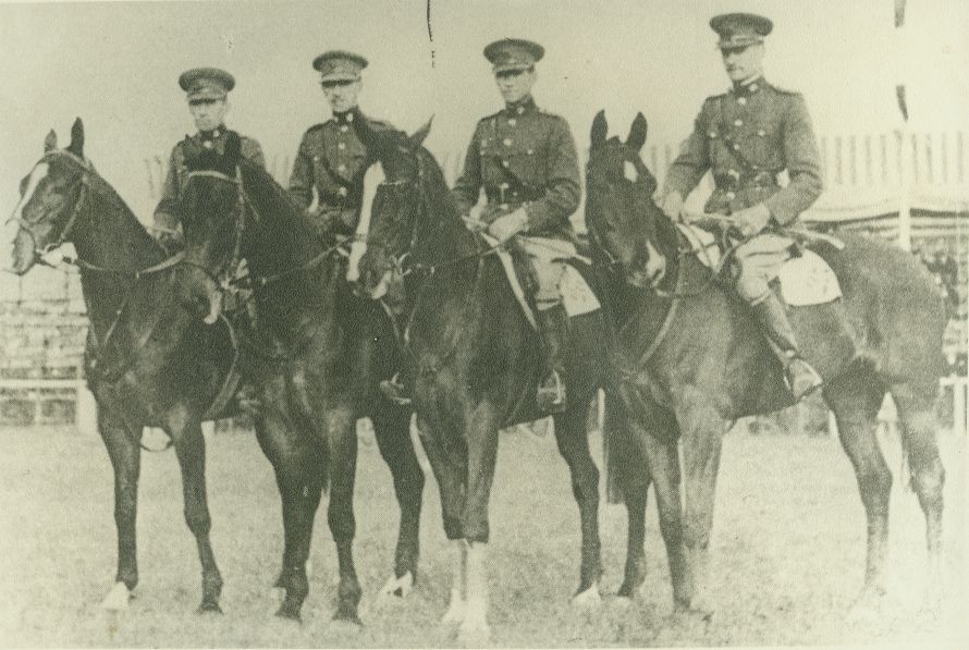 | Nr. inwentarzowy: MŁJ-XVI 1639 / 00 / 001 opis: Plac konkursowy, prezentacja ekipa Irlandii (skoczkowie). Na stojących koniach od lewej: major Dan J. Corry, kpt. Fred A. Ahern, kpt. Jack J. Lewis, lt. Strack. Konie w rzędach sportowych, w tle miejsca dla widzów.czas powstania - daty graniczne: 1929-01-01 - 1939-08-31miejsce: jeden z europejskich hipodromówosoby: Irlandczycy: major Dan J. Corry, kpt. Fred A. Ahernn, kpt. Jack J. Lewis, lt. Stracktworzywo: papier fotograficzny, matowytechnika: odbitka żelatynowo-srebrowa z wydrukuzespół: album Clemensa Nagla Międzynarodowi artyści w jeździe przez przeszkodywymiary (wys. x szer.): 119 x 174 [mm]