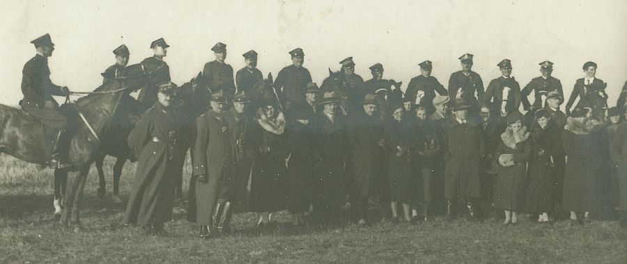 | Nr. inwentarzowy: MŁJ-XVI 1747 / 00 / 015 opis: Bieg św. Huberta w 23 p.u. – W szeregu, konno kilkunastu oficerów i jedna kobieta. Z prawej, obok amazonki rtm. Michał Bohdanowicz. Przed nimi kilkanaście osób - oficerowie, i cywile obojga płci.czas powstania - daty graniczne: 1937-10-24 - 1937-10-24miejsce: Postawy - po odzyskaniu przez Polskę niepodległości siedziba pow. i gminy wiejskiej, woj. wileńskieosoby: Rtm. Michał Bohdanowicz (1903-1948), 13 p.u.inne nazwy własne: Postawy, Pastawytworzywo: papier fotograficzny, matowytechnika: odbitka żelatynowo-srebrowa DOP, czarno-białazespół: album rodziny Leskichwymiary (wys. x szer.): 49 x 109 [mm]