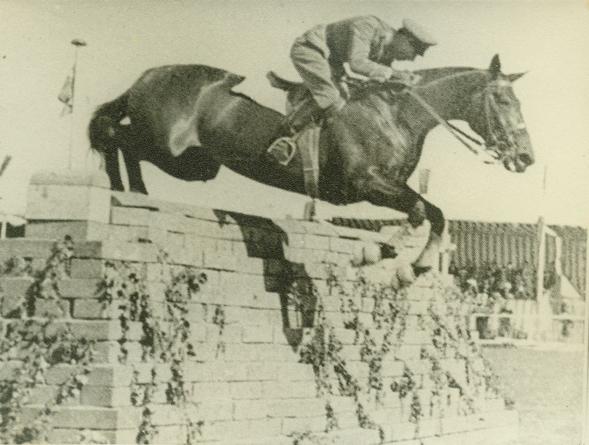 | Nr. inwentarzowy: MŁJ-XVI 1639 / 00 / 048 opis: Portugalczyk por. Hélder Martins w skoku przez mur na koniu ciemnej maści Eryere. Ogłowie prawdopodobnie pelhamowe. Przeszkoda - wysoki "ceglany" mur, prawdopodobnie konkurs potęgi skoku. W tle publiczność pod pasiastym namiotem.czas powstania - daty graniczne: 1929-01-01 - 1939-08-31miejsce: Niceaosoby: Portugalczyk por. Hélder Martins - olimpijczyk z Paryża 1924, Amsterdamu 1928 i Londynu 1948tworzywo: papier fotograficzny, matowytechnika: odbitka żelatynowo-srebrowa z wydrukuzespół: album Clemensa Nagla Międzynarodowi artyści w jeździe przez przeszkodywymiary (wys. x szer.): 125 x 165 [mm] Koń: 1. Eryere