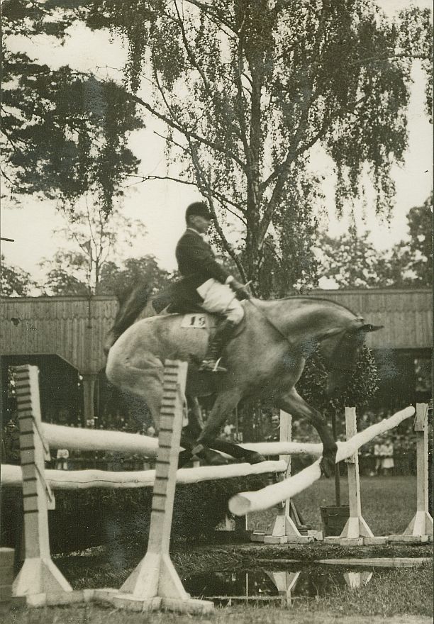 | Nr. inwentarzowy: MŁJ-XVI 1744 / 00 / 079 opis: Międzynarodowe i Krajowe Konkursy Hipiczne w Łazienkach. Rumun, kpt. Fortunescu, startujący indywidualnie jako jeździec cywilny, w nieudanym skoku na koniu Correggio (deresz?). Koń zrzuca drągi z szerokiej przeszkody zakończonej rowem z wodą. Jeździec ratuje się ściągając wodze. W tle trybuna, drzewa.czas powstania - daty graniczne: 1931-05-28 - 1931-06-08miejsce: Warszawa, hipodrom w Łazienkachosoby: Rumun Fortunescu, wg. opisu w albumie kpt., startował jednak jako zawodnik cywilnytworzywo: papier fotograficzny, półbłyszczącytechnika: odbitka żelatynowo-srebrowa DOP, czarno-białazespół: album rodziny Leskichwymiary (wys. x szer.): 169 x 118 [mm] Koń: 1. Corregio - koń, na którym startował Fortunecsu