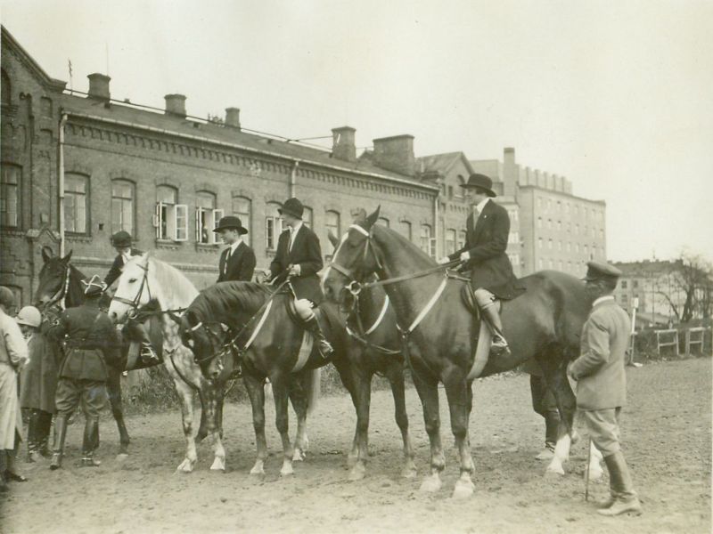 | Nr. inwentarzowy: MŁJ-XVI 1753 / 00 / 164 opis: Konkurs wewnętrzny Klubu Sportowego Rodziny Wojskowej na ujeżdżalni W.S.Woj. amazonki i konie, które zajęły czołowe miejsca stoją w szeregu. Od lewej: I miejsce Zofia Chodkiewiczówna (Nicpoń); II miejsce Paulina Jaroszewiczowa (Duduś), III miejsce Laura Dobruttowa (Centaur), Maria Zwierzchowska (siedzi na koniu Hipcio, drugiego trzyma za wodze) - w niektórych źródłach to ona zajęła III miejsce. Z prawej mężczyzna z laską, z lewej oficer, kobieta i cywil. data: w albumie: maj 1930 r., ale zawody odbyły się w połowie czerwcaczas powstania - daty graniczne: 1930-06-14 - 1930-06-15miejsce: Warszawa, ul. Koszykowa 79, Wyższa Szkoła Wojenna, ujeżdżalnia położona w kwartale: Koszykowa – Krzywickiego/Sucha – 6 Sierpnia/Nowowiejska – Topolowa/Al. Niepodległościosoby: Zofia Chodkiewiczówna 1903-1996 (siostra Ireny); Paulina Jaroszewiczowa ("Lusia", startowała m.in. na koniach Dukat i Barnaba, także podczas warszawskich zawodów w Łazienkach, w skokach i ujeżdżeniu); Laura Dobruttowa 1896-1988; Maria Zwierzchowska 1901-1976.inne nazwy własne: W.S.W - WSW - W.S.Woj. - Wyższa Szkoła Wojennatworzywo: papier fotograficzny, błyszczącytechnika: odbitka żelatynowo-srebrowa DOP, czarno-białazespół: album rodziny Bohdanowiczówwymiary (wys. x szer.): 86 x 114 [mm] Konie: 1. Nicpoń, wałach, maść gniada - własność Zofii Chodkiewiczówny, hod. nieznany, na zdjęciu: 1. miejsce 2. Duduś, wałach, maść siwa - koń, na którym jeździła Paulina Jaroszewiczowa, na zdjęciu: 2. miejsce 3. Centaur, wałach, maść kasztanowata - po Mości Pan i Surja, hod. hr. Mycielska, wł. Laura Dobrutt - startowała na nim w konkursach, także w Warszawie, w Łazienkach, na zdjęciu: 3.miejsce 4. Hipcio, wałach - koń, na którym jeździła Maria Zwierzchowska, na zdjęciu: 3. lub 4. miejsce