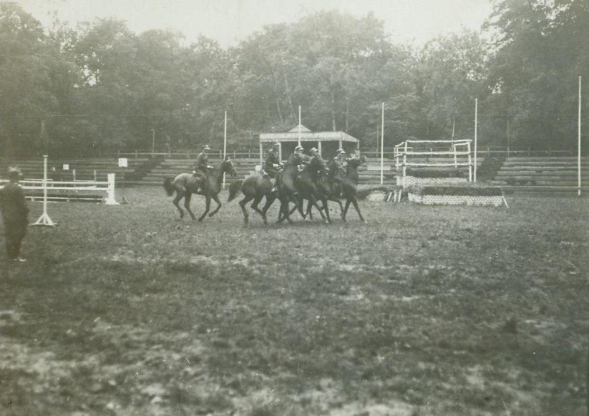 | Nr. inwentarzowy: MŁJ-XVI 1743 / 00 / 053 opis: Płyta hipodromu. 4 oficerów 14 p.u. galopuje na koniach w szeregu (3 m. zespołowo), za nimi piąty - por. Józef Najnert na koniu Ład (3 m. ind.).czas powstania - daty graniczne: 1930-07-01 - 1930-07-31miejsce: Warszawa, Łazienki, hipodromosoby: por. Józef Najnert (1895-1940) 3 p.u. - 3 m. ind. w 1930 r. w Konnych Mistrzostwach Armiitworzywo: papier fotograficzny, błyszczącytechnika: odbitka żelatynowo-srebrowa DOP, czarno-białazespół: album rodziny Leskichwymiary (wys. x szer.): 85 x 115 [mm] Koń: 1. Ład, wałach, maść dereszowata - imp. z Węgier; wł. J. Najnerta; 1929 strat w Warszawie, w 1930 r. 3 m. ind. pod J. Najnertem w Mistrzostwach Armii, stratował też w ujeżdżeniu