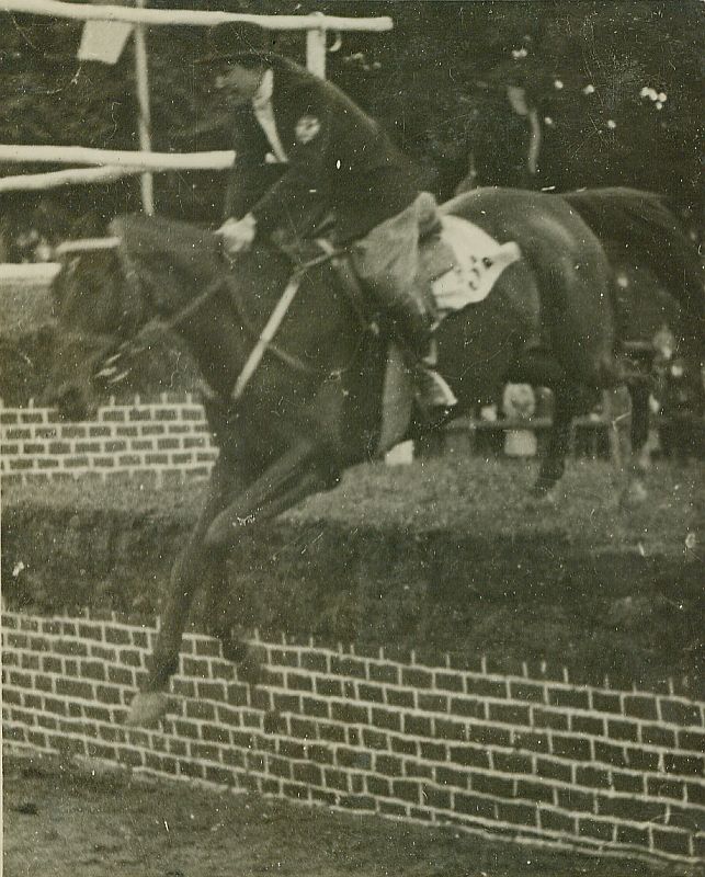 | Nr. inwentarzowy: MŁJ-XVI 1744 / 00 / 067 opis: Międzynarodowe i Krajowe Konkursy Hipiczne w Łazienkach. Wanda Leska w zeskoku z murowanego bankietu na koniu ciemnej maści Kazik. Amazonka w meloniku, ciemnym fraczku, jaśniejszych bryczesach i długich butach. Potnik z numerem. W tle wyższa część bankietu, drzewa.czas powstania - daty graniczne: 1931-05-28 - 1931-06-08miejsce: Warszawa, hipodrom w Łazienkachosoby: Wanda Leska (1908-1991)tworzywo: papier fotograficzny, półmatowytechnika: odbitka żelatynowo-srebrowa DOP, czarno-białazespół: album rodziny Leskichwymiary (wys. x szer.): 100 x 80 [mm] Koń: 1. Kazik, wałach, maść skarogniada, ur. 1925 - Rock-Roy – Merilla, hod. H. Jechalskiego, wł. Wandy Leskiej-Bohdanowicz; w 1930 roku właścicielka trenowała go na ujeżdżalni W.S.Woj., startowała na nim m.in. w Warszawie, podczas Krajowych Zawodów Konnych w 1932 r.; w 1933 r. wygrywali na nim biegi przełajowe M. Bohdanowicz i J. Domański. W 1937 r. startował w Grudziądzu i Gnieźnie