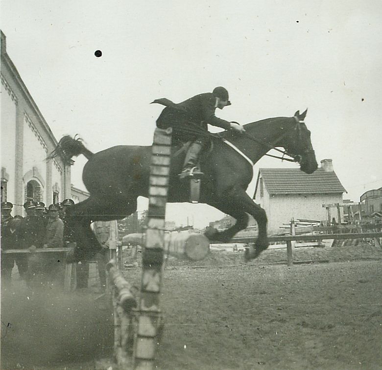 | Nr. inwentarzowy: MŁJ-XVI 1744 / 00 / 045 opis: Fragment ujeżdżalni Policji, przez stacjonatę skacze na koniu Łotrzyk Zofia Chodkiewiczówna. Zdjęcie z boku. Amazonka w ciemnym stroju jeździeckim: toczek, frak, bryczesy i długie buty. Koń ciemnej maści. W tle ogrodzenie, budynki. Z lewej kilku policjantów w mundurach.czas powstania - daty graniczne: 1931-05-09 - 1931-05-09miejsce: Warszawa, ujeżdżalnia Policjiosoby: Zofia (Zosia, Zofja) Chodkiewiczówna (Chodkiewicz)tworzywo: papier fotograficzny, błyszczącytechnika: odbitka żelatynowo-srebrowa DOP, czarno-białazespół: album rodziny Leskichwymiary (wys. x szer.): 62 x 64 [mm] Koń: 1. Łotrzyk, wałach