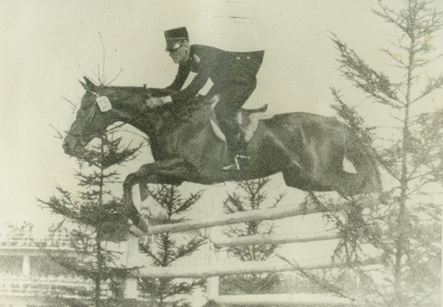 | Nr. inwentarzowy: MŁJ-XVI 1639 / 00 / 053 opis: Holender kpt. Jan de Bruine w ciemnym mundurze na kasztanowatym koniu Trip. Skok przez okser z jasnych drągów (widać tylko górną część i szpilkowe drzewka). Koń w rzędzie sportowym, ogłowie wędzidłowe z numerem. W głębi piętrowa trybuna.czas powstania - daty graniczne: 1929-01-01 - 1939-08-31osoby: Holender kpt. Jan de Bruine - skoczek, olimpijczyk z Berlina 1936 (srebrny medal zesp.) i Londynu 1948tworzywo: papier fotograficzny, matowytechnika: odbitka żelatynowo-srebrowa z wydrukuzespół: album Clemensa Nagla Międzynarodowi artyści w jeździe przez przeszkodywymiary (wys. x szer.): 124 x 172 [mm] Koń: 1. Trip, maść kasztanowata - koń, na którym w l. 30. XX w. startował Holender kpt. Jan de Bruine.