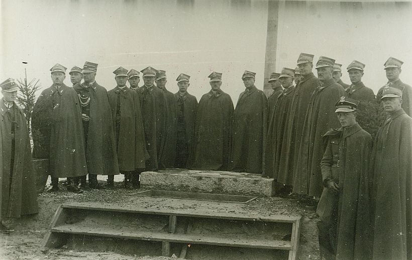 | Nr. inwentarzowy: MŁJ-XVI 1759 / 00 / 062 opis: Podróż oficerów 3 Samodzielnej Brygady Kawalerii na trasie: Lwów - Katowice - Kraków - Zakopane - Warszawa - Wilno. 21 oficerów w mundurach z pelerynami stoi za płytą granitową z Krzyżem Legionowym, która ma zostać zamontowana na szczycie powstającego Kopca Piłsudskiego. Z przodu drewniane schodki. obok płyty rama drewniana - miejsce na złożenie ziemi z pól bitewnych I wojny światowej. 2. od lewej płk Czesław Chmielewski,