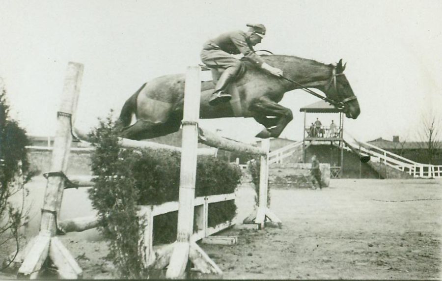 | Nr. inwentarzowy: MŁJ-XVI 1517 / 00 / 001 opis: por. Kazimierz Nieniewski 4 p.s.k. na klaczy Wersja – skok przez okserdata: wiosna 1933czas powstania - daty graniczne: 1933-03-01 - 1933-08-12miejsce: Polska, Grudziądz, C.W.K. [Centrum Wyszkolenia Kawalerii]osoby: por. Kazimierz Nieniewski - uczestnik IX KIJK 15.10.1931-15.08.1932 i III WKIJK 15.10.1932-12.08.1933inne nazwy własne: IX Kurs Instruktorów Jazdy Konnej; III Wyższy Kurs Instruktorów Jazdy Konnejtworzywo: papier fotograficzny, błyszczącytechnika: odbitka żelatynowo-srebrowa DOP, czarno-białazespół: album rodziny Nieniewskichwymiary (wys. x szer.): 60 x 91 [mm] Koń: 1. Wersja, klacz