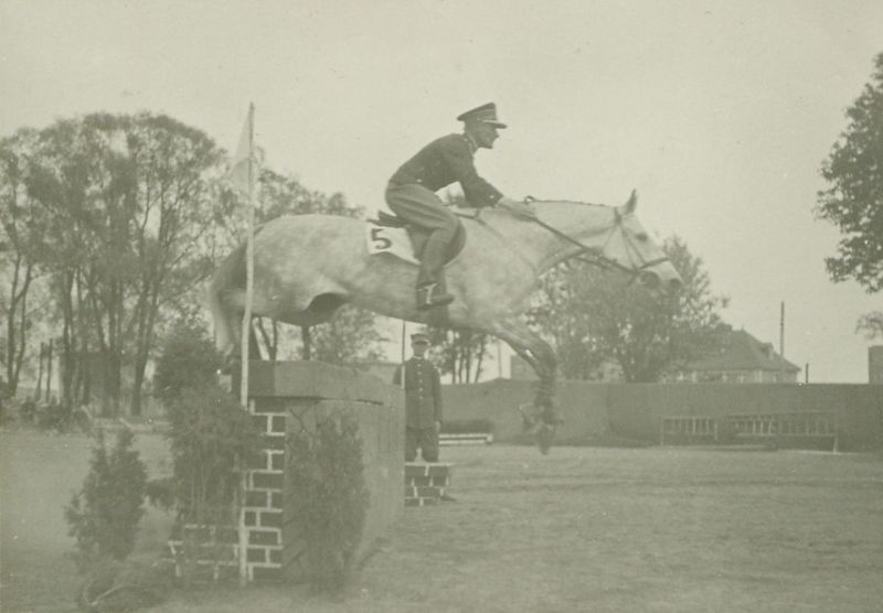 | Nr. inwentarzowy: MŁJ-XVI 1518 / 00 / 029 opis: por. Tadeusz Sokołowski 1 p.szw., skok przez mur na klaczy Wróżka; na potniku nr 5data: wiosna-jesień 1933czas powstania - daty graniczne: 1933-03-01 - 1933-10-31miejsce: Polska, Grudziądz, C.W.K. [Centrum Wyszkolenia Kawalerii]osoby: por. Tadeusz Sokołowski, uczestnik IX KIJK 15.10.1931-15.08.1932 i III WKIJK 15.10.1932-12.08.1933inne nazwy własne: IX Kurs Instruktorów Jazdy Konnej; III Wyższy Kurs Instruktorów Jazdy Konnejtworzywo: papier fotograficzny, błyszczącytechnika: odbitka żelatynowo-srebrowa DOP, czarno-białazespół: album rodziny Nieniewskichwymiary (wys. x szer.): 61 x 87 [mm] Koń: 1. Wróżka, klacz, maść siwa