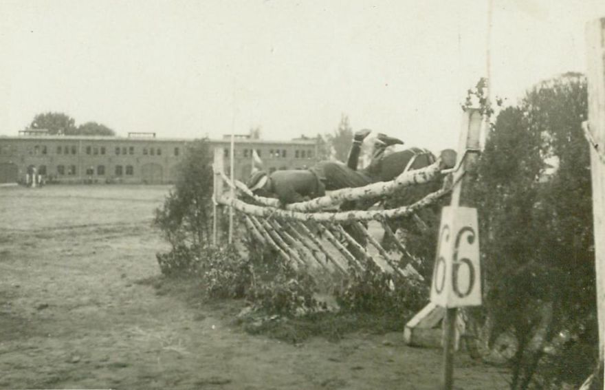 opis: rtm. Kazimierz Szosland 2 p.u., upadek podczas skoku przez brzozowy płotek nr 6
